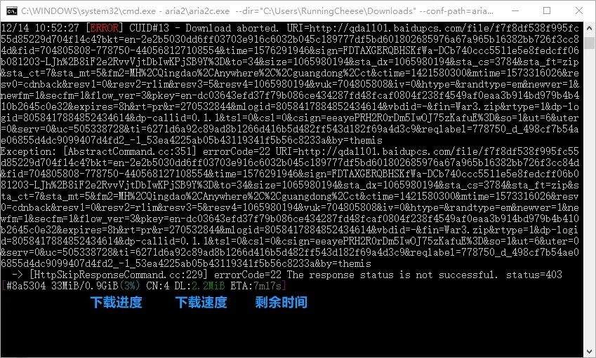 IDM 更加方便,且不容易出错,Aria2 的速度更快,理论上可以达到满宽带,速度如果不快,可以尝试 ID。