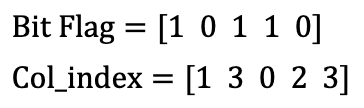 类似差分编码的位标记符。如下图所示,左边是原始索引,右边是压缩之后的索引。主要内容针对行索引进行压缩,将每一行最后一个元素标记为0,其他元素标记为1。这样子带来了新的问题,虽然可以知道每一行的分界线,但是每一行到有多少个元素,某一个元素到底属于哪一行就很难知道。因为相比Row Index每一位就需要好几个字节,bit flag只需要一位。因为通过让一个线程负责多个块,线程就可以以short等数据类型为单位从显存中读出数据,触发对齐合并访存。