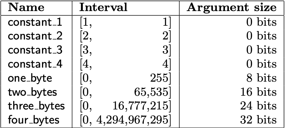 在实际的压缩中,我们需要存储两个东西,一个是增量的类型,包括几个常量1、2、3、4,代表两个列索引大小之间的差距是1、2、3、4;以及几个需要附带参数的间隔类型,1-4字节,这只能声明两个列索引之间的间隔大小的范围,还需要一个额外的参数来记录相邻列索引之间的间隔大小。