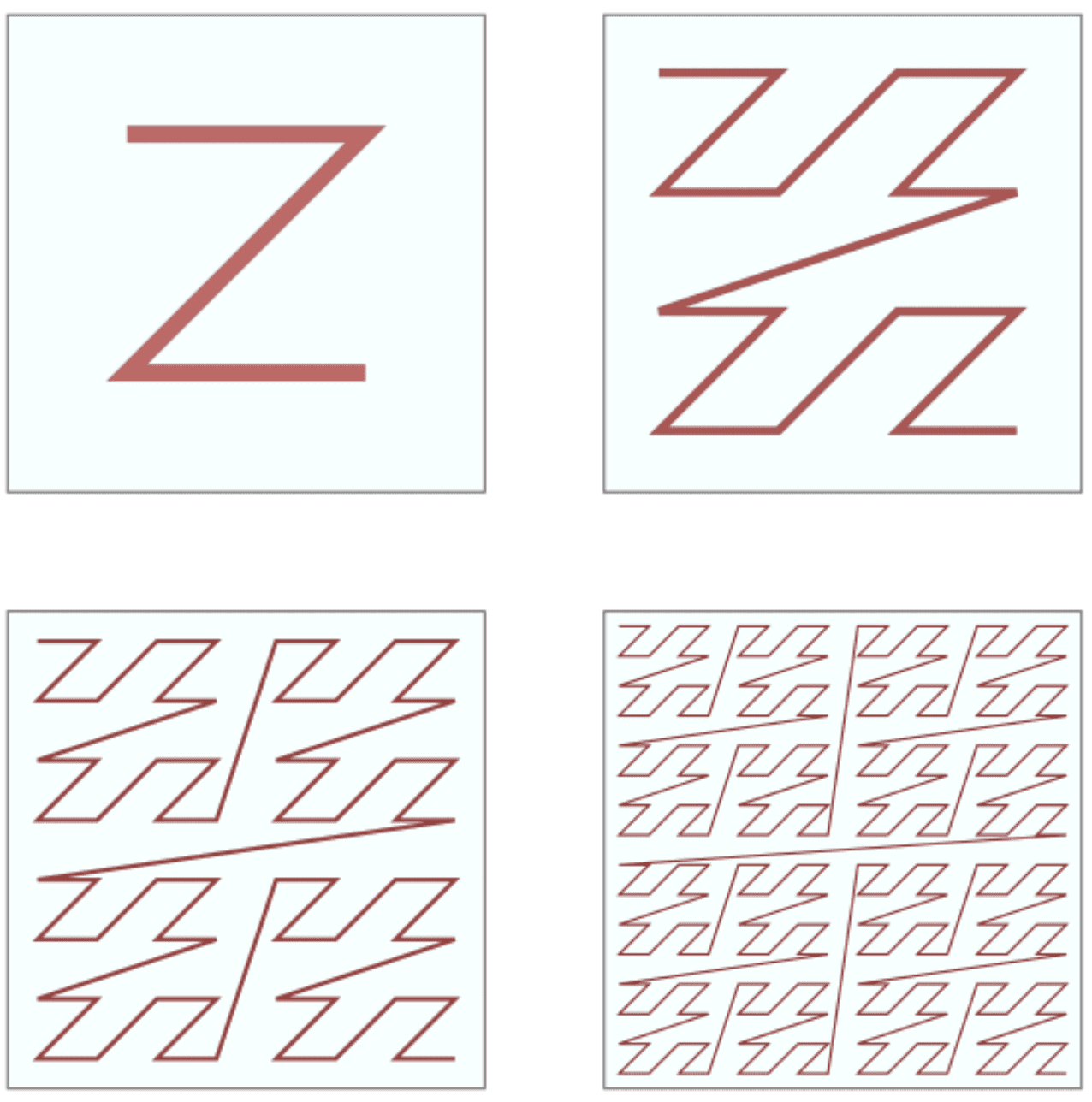 从一个块内部的角度来看,块内的元素采用一种叫做Z型曲线的顺序存储: