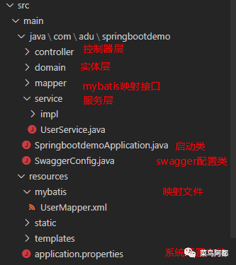 SpringBoot框架已经成为越来越多企业的选择,约定大于配置的特性,使其可以快速开发,程序员也能很快上手,在与数据库交互方面,所使用的主流的两种ORM对象关系框架:hibernate,Mybatis,Mybatis因其对数据库操纵的灵活性更受青睐,MVC三层模式到前后端分离开发模式,Swagger架起了前后端的桥梁,更加直观的测试与展示接口。本文主要搭建一个纯净的springbootDemo框架,集成了Mybatis,Swagger,并创建了具有Restful规范的增删改查接口示例,关注微信公众号(菜鸟阿都)并回复:spingboot,即可获得源码。