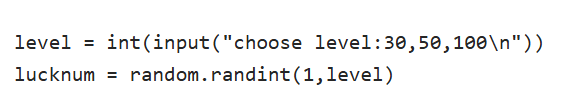 - 问题2解决方案:import random,引入level供玩家选择,改成自选难度模式