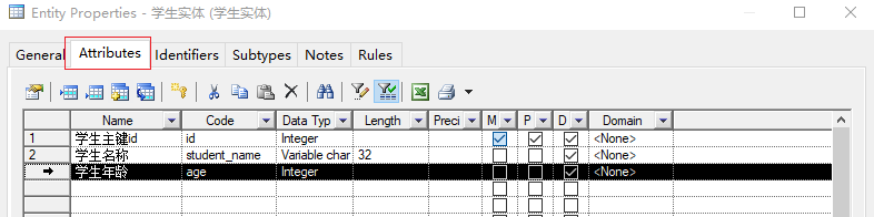 唯一标识一行记录,相当于身份证号、学号、手机序列号、门牌号,可以标识出每一个人、每一个学生、每一台手机、每一户家庭住址在Identifiers标签页中设置。当勾选attribute标签页的P时,也会联动出现在这里。