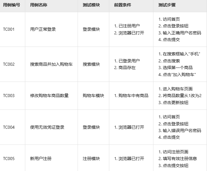 验证电商网站核心功能(用户登录、商品搜索、购物车操作)的正确性