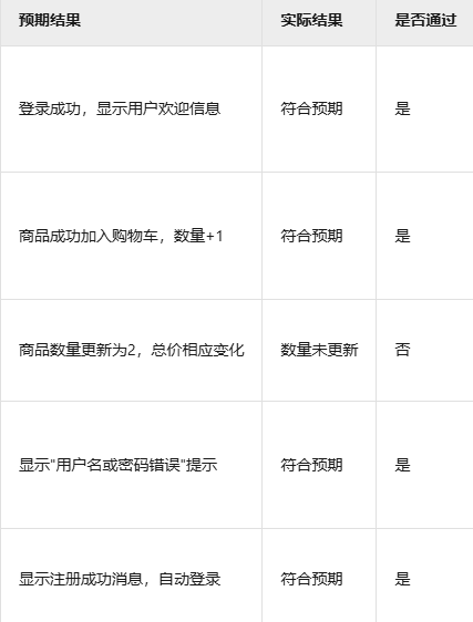 不足与建议:购物车功能存在缺陷,建议优先修复、增加表单输入的边界测试、添加更多异常场景测试用例、优化页面元素加载速度