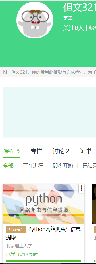 经过四星期嵩天老师对我们讲解的爬虫,让我清晰的认识到自己对于我们所学的专业,我还是多么无知的一个人,他的这门课程就像通往知识海洋里的一所大门的钥匙。