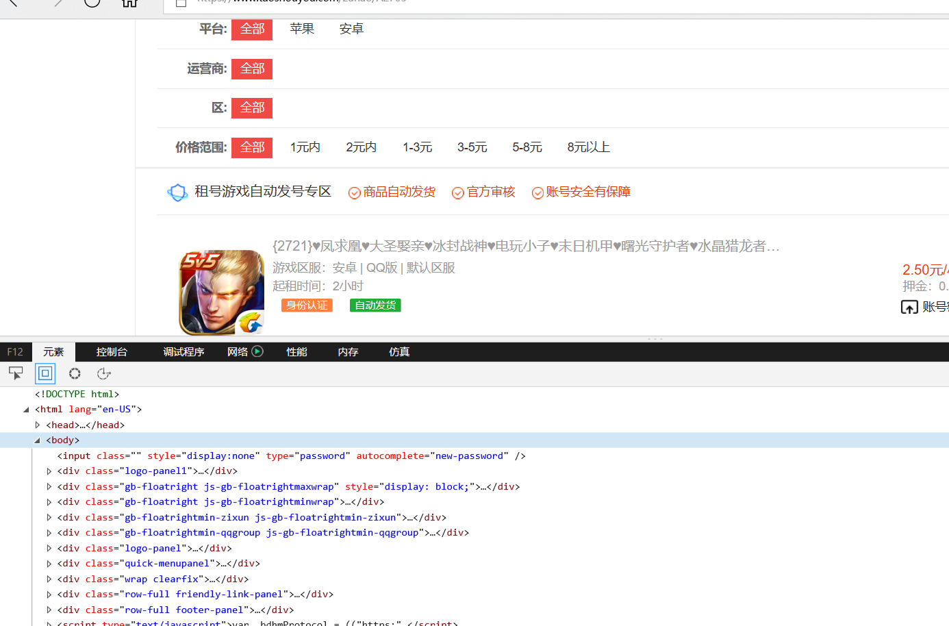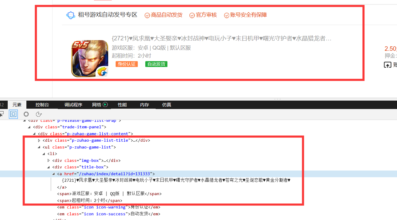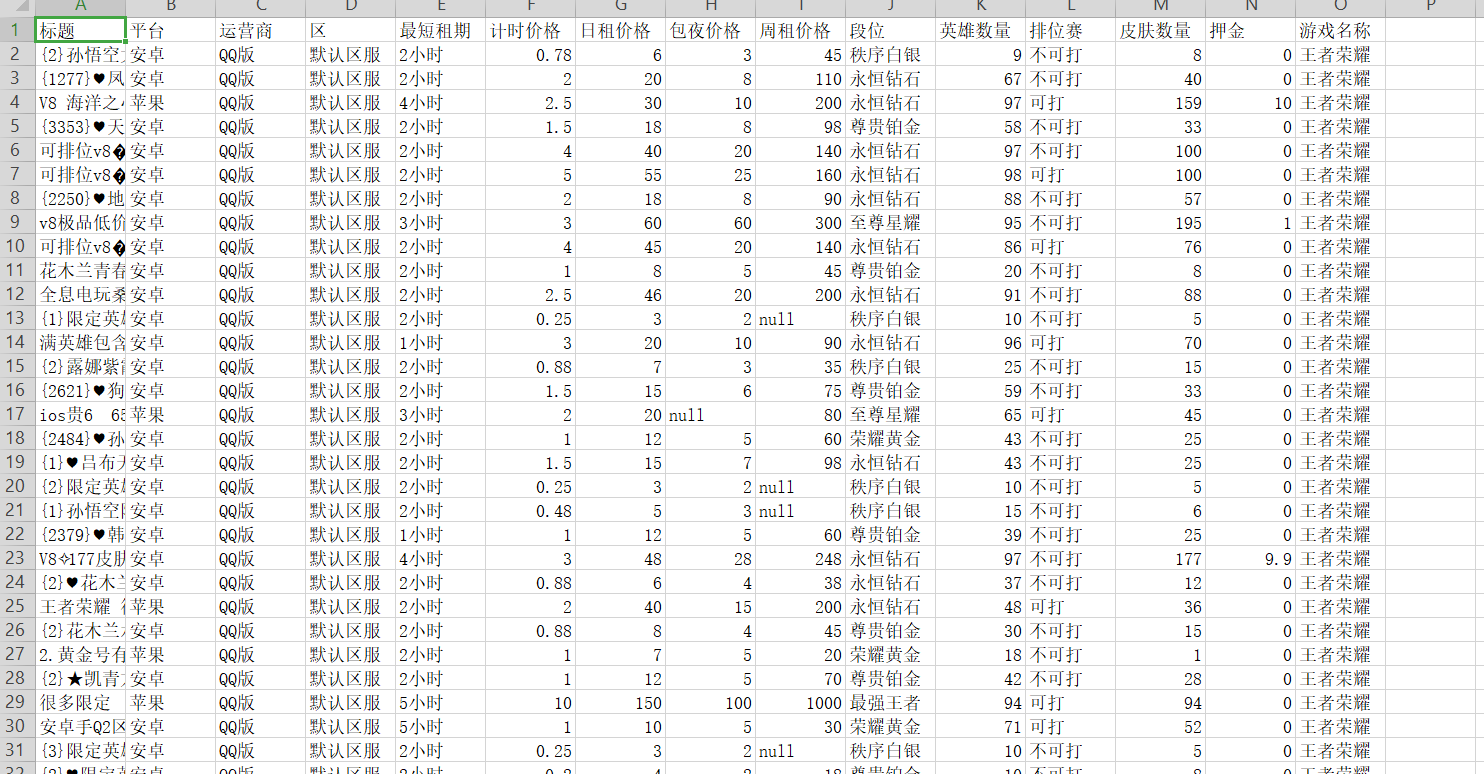 爬取淘手游王者荣耀租号的质量