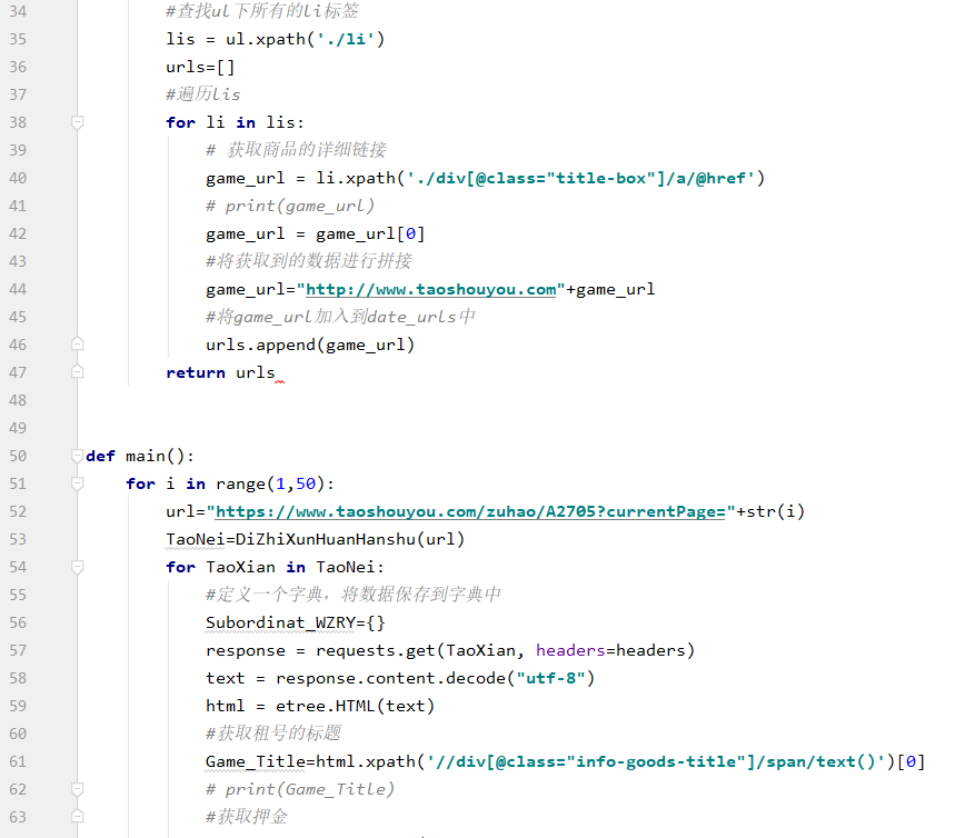 创建一个get的类,定义get_alldata()方法用来获取网页上的全部信息,get_detail()方法用来对整数数据的进一步加工和提取,再用字典把数据存储起来。