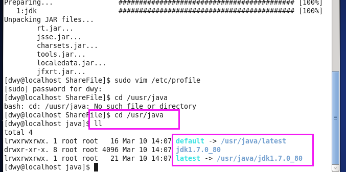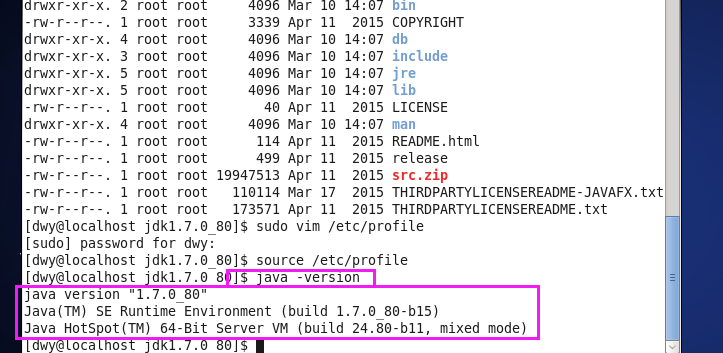 执行命令:sudo rpm-ivh jdk-7u80-linux-x64.rpm