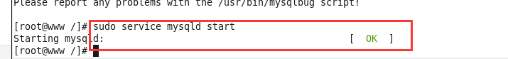 3、命令行下输入:mysql_install_db,之后在输入:sudo service mysqld start,成功启动服务。