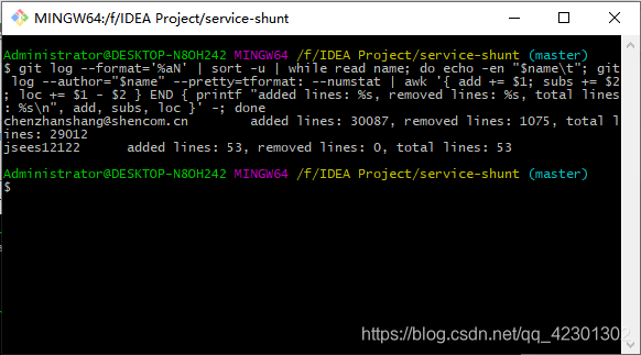 在实际开发中,常常会想查看自己对于某个项目的贡献,管理者会查看项目下各成员的贡献,就需要使用到 git 的命令进行代码提交的统计。