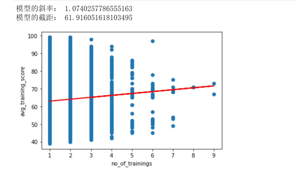 #使用corr()函数,判断两个属性是否具有相关性,获奖与KPI>80% df['awards_won?'].corr(df['KPIs_met >80%']) #使用corr()函数,判断两个属性是否具有相关性,是否训练平均分与训练 df['avg_training_score'].corr(df['no_of_trainings']) #使用corr()函数,判断两个属性是否具有相关性,平均得分和是否获奖 df['avg_training_score'].corr(df['awards_won?'])