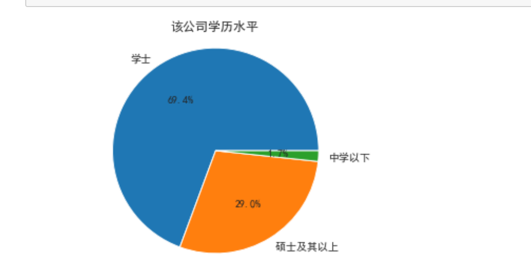1.数据分析过程中得出该数据集,只有很少的一部分人是中级以下学历,学士学位以及以上占大部分,说明了学历的重要性,求职过程中有一个较好的学历更加有优势。年龄,主要集中的年龄就是25到35这一年龄段,说明该公司需求大的也是年轻人。其中男性女性人数相差较大,女生相应的岗位可能需求更加小。