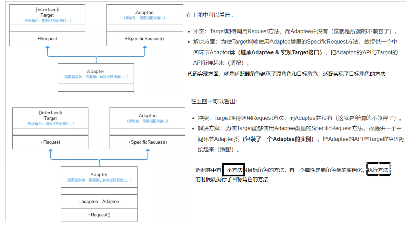 #解决的问题:适配器模式使得原来由于接口不兼容而不能一起工作的那些类可以一起工作。就上个例子而言没有适配器,手机和德国的插头时没有办法一起工作的,有了适配器,手机就可以充电了。