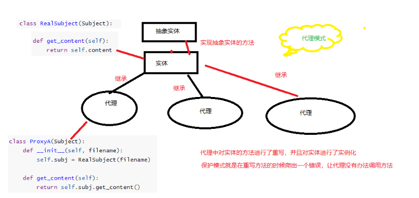 #抽象实体定义一个接口q,实例A和代理B全部实现这个接口,代理中对实例A进行了实例化,调用B的q相当于调用了A的q,白话一点就是原来实例化A,现在实例化B,使用相同的方法就是得到同样的东西。