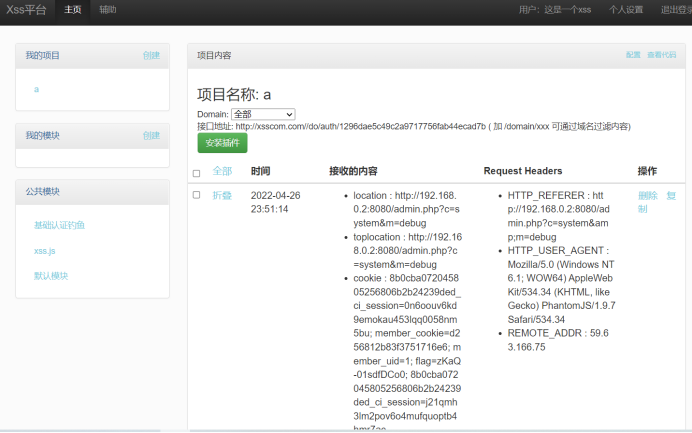 通过构造URL,让后台生成错误日志,而后台对错误日志的内容写入没有进行安全检查,导致写入的内容原原本本的显示在错误日志的页面中,当管理员在后台查看错误日志时,就会触发XSS代码。