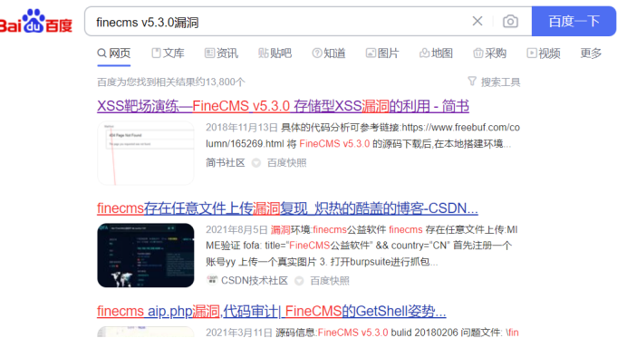 1-打开靶场发现是finecms v5.3.0 框架,第一步百度/谷歌搜索该版本漏洞