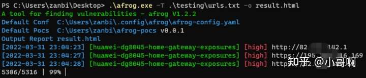 afrog -T urls.txt -o result.html例如:urls.txthttp://example.comhttp://test.comhttp://github.com