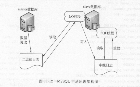 Slave_IO_State : I/O线程连接master状态 Master_User : 用于连接master的用户 Master_Port : master端监听端口 Connect_Retry : 主从连接失败,重试时间间隔。 Master_Log_File :I/O线程读取的master二进制日志文件的名称 Read_Master_Log_Pos : I/O线程已读取的master二进制日志文件的位置。 Relay_Log_FIile : SQL线程读取和执行的中继日志文件的名称。 Relay_Log_Pos : SQL线程已读取和执行的中继日志文件的位置 Relay_Master_Log_File : SQL线程执行的master二进制日志文件的名称。 Slave_IO_Running : I/O线程是否被启动并成功得连接到主服务器上 Slave_SQL_Running : SQL线程是否被启动。 Relicate_Do_DB :指定的同步的数据库列表。