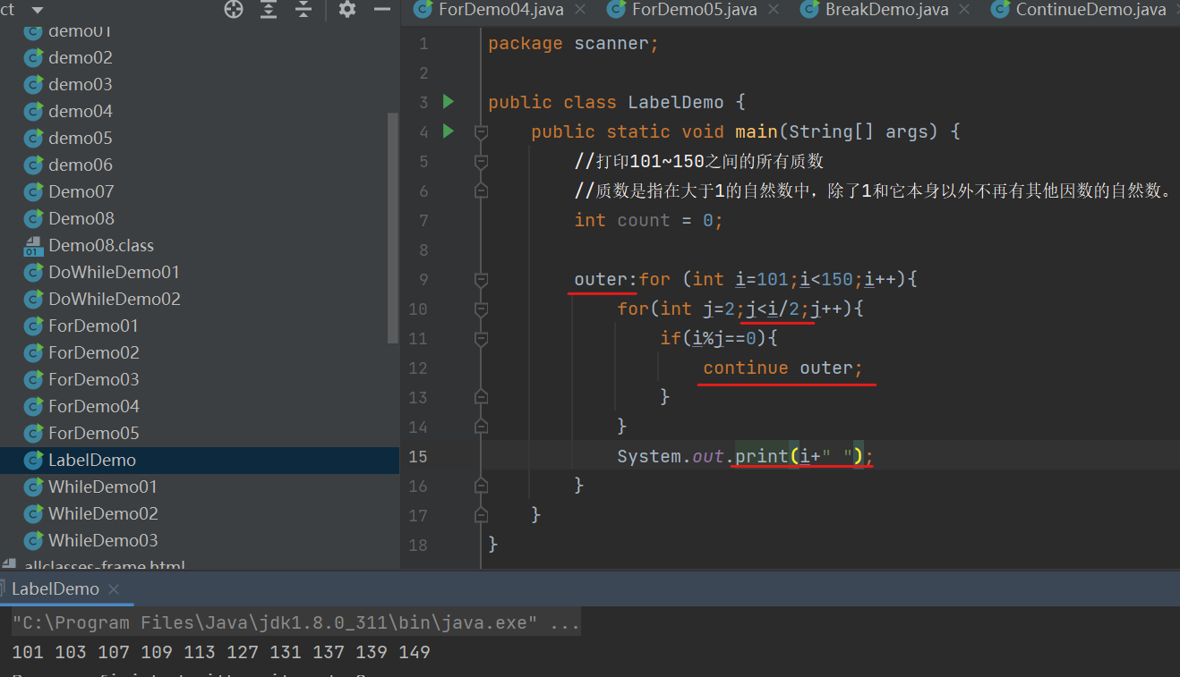 - 对Java来说唯一用到标签的地方是在循环语句之前。而在循环之前设置标签的唯一理由是:我们希望在其中嵌套另一个循环,由于break和continue关键字通常只中断当前循环,但若随同标签使用,它们就会中断到存在标签的地方。