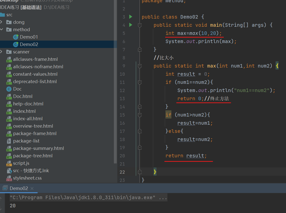 设计方法的原则:方法的本意是功能块,就是实现某个功能的语句块的集合。我们设计方法的时候,最好保持方法的原子性,**就是一个方法只完成一个功能,这样利于我们后期的扩展。
