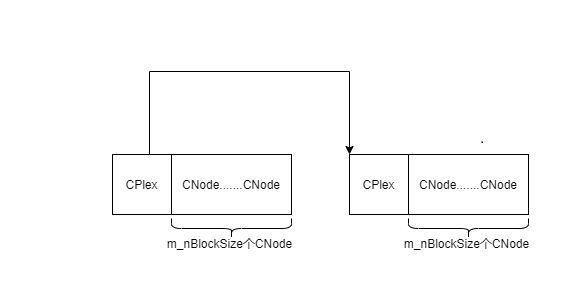INT_PTR m_nBlockSize;//每个内存块最多能存储节点的个数,每个内存块能存储m_nBlockSize*sizeof(CNode)+sizeof(CPlex)