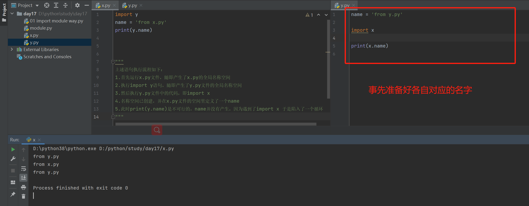 5.此时print(y.name)是不可行的,name并没有产生,因为遇到了import x 于是陷入了一个循环