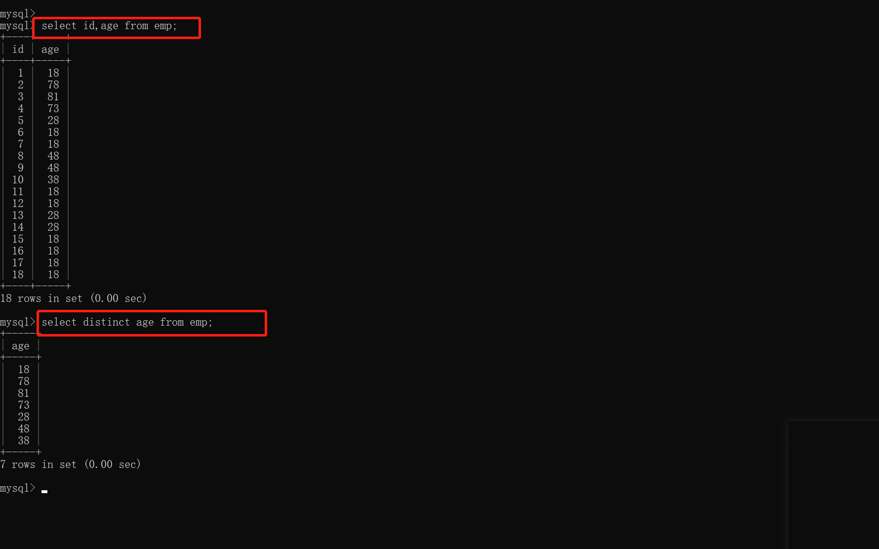 select * from emp limit 5,5;   # 从第5行开始展示5行