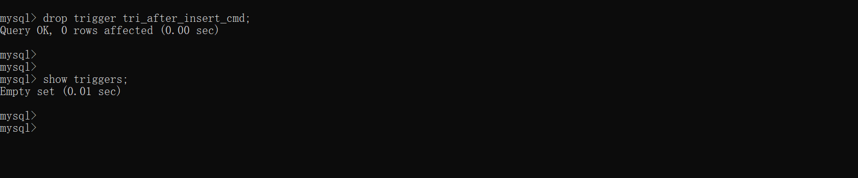create trigger tri_afrer_insert_cmd after insert on cmd for each row  # 在insert插入数据之后创建触发器