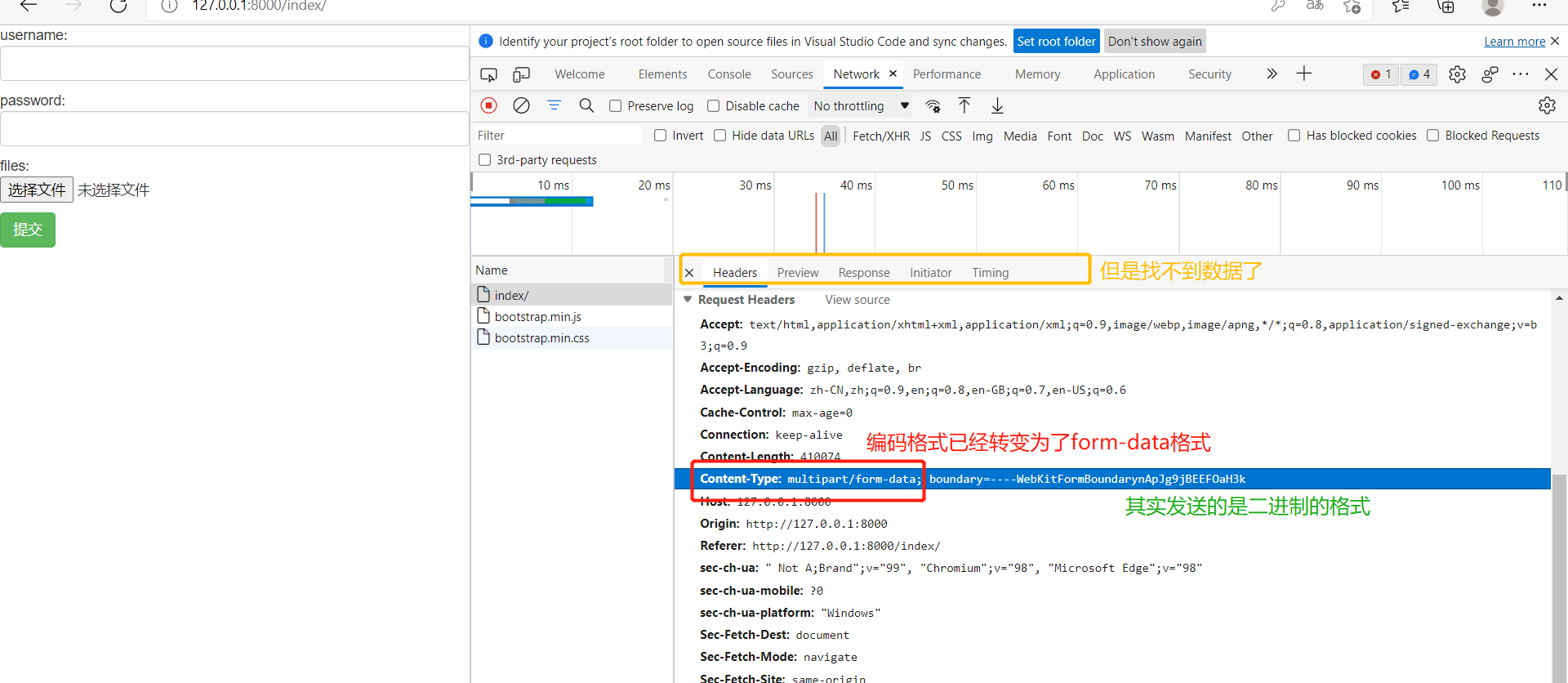 # 作用:可存储普通数据和文件数据,一并发送给后端