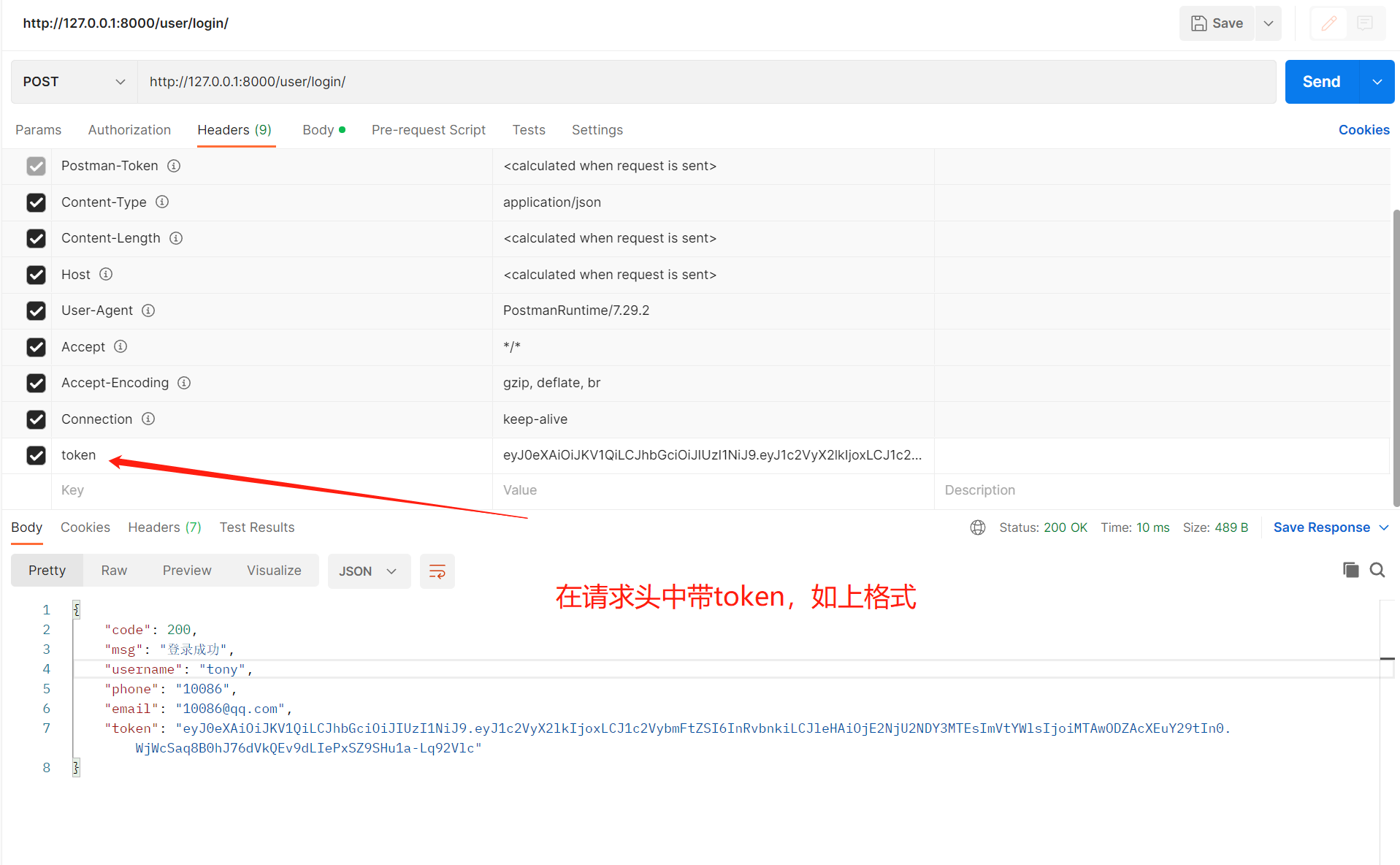 -前端访问时,token需要放在请求头中