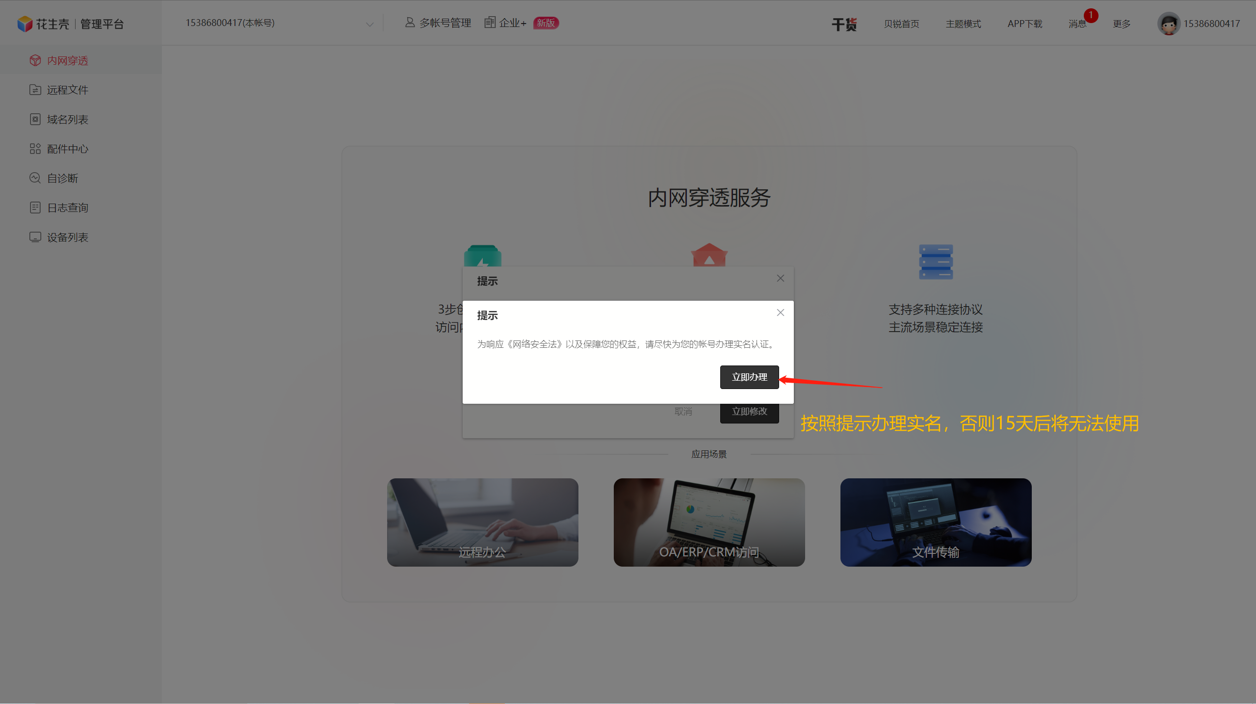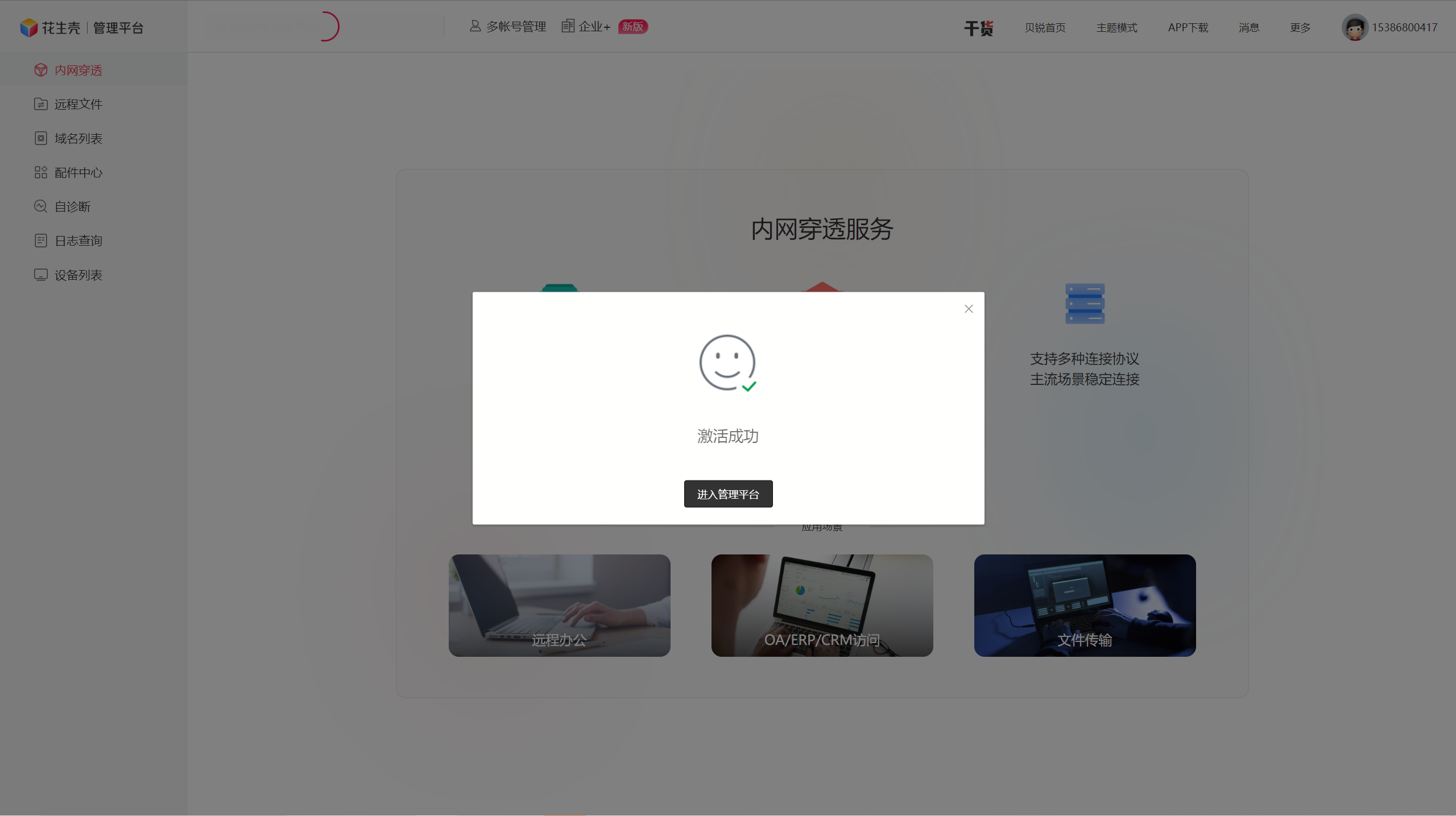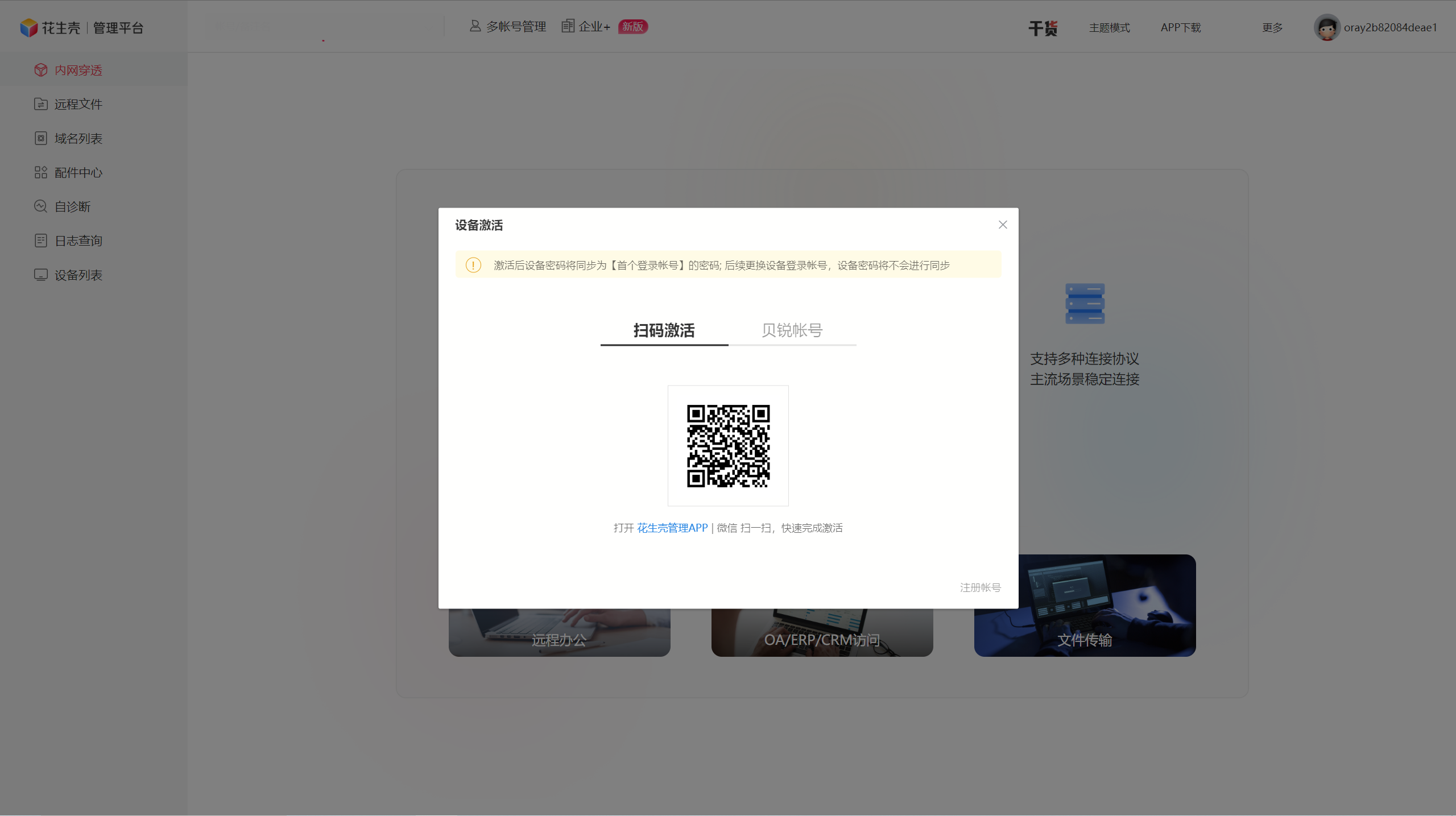 2.1 扫码激活:需使用花生壳管理APP或微信对页面出现的二维码进行扫码激活;