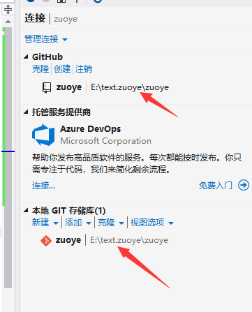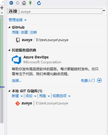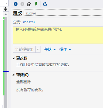 在本地的Git存储库里面新建一个项目写代码,写好后,点击更改,然后点全部提交。