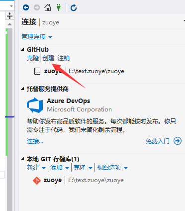 输入账号密码登陆。连接成功以后,就可以点GitHub上面的create创建仓库管理代码了