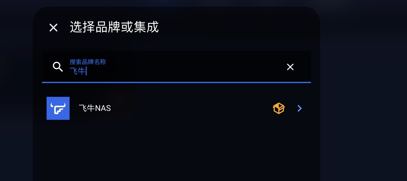 在 Home Assistant 中,进入 "设置" → "设备与服务" → "添加集成",搜索 "飞牛 NAS" 并选择。