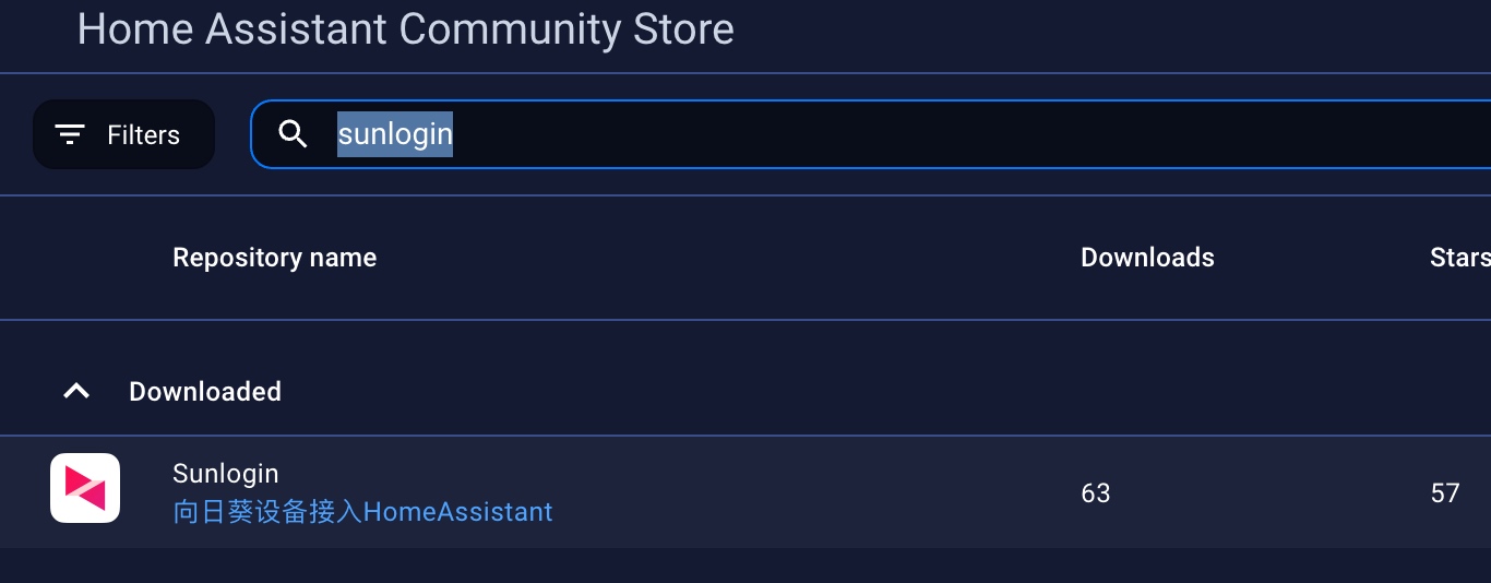 添加完成后,可以在HACS商店中搜索并安装sunlogin 集成。