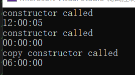 1 #include <iostream> 2 #include <iomanip> 3 using std::cout; 4 using std::endl; 5 class Clock 6 { 7 public: 8 Clock(int h = 0, int m = 0, int s = 0); 9 Clock(const Clock& t); 10 ~Clock() = default; 11 void set_time(int h, int m = 0, int s = 0); 12 void show_time() const; 13 private: 14 int hour, minute, second; 15 }; 16 17 Clock::Clock(int h, int m, int s): hour{h}, minute{m}, second{s} 18 { 19 cout << "constructor called" << endl; 20 } 21 Clock::Clock(const Clock& t): hour{t.hour}, minute{t.minute}, 22 second{t.second} 23 { 24 cout << "copy constructor called" << endl; 25 } 26 void Clock::set_time(int h, int m, int s) 27 { 28 hour = h; 29 minute = m; 30 second = s; 31 } 32 void Clock::show_time() const 33 { 34 using std::setw; 35 using std::setfill; 36 cout << setfill('0') << setw(2) << hour << ":" 37 << setw(2) << minute << ":" 38 << setw(2) << second << endl; 39 } 40 41 Clock reset() 42 { 43 return Clock(0, 0, 0); 44 } 45 int main() 46 { 47 Clock c1(12, 0, 5); 48 c1.show_time(); 49 c1 = reset(); 50 c1.show_time(); 51 Clock c2(c1); 52 c2.set_time(6); 53 c2.show_time(); 54 }
