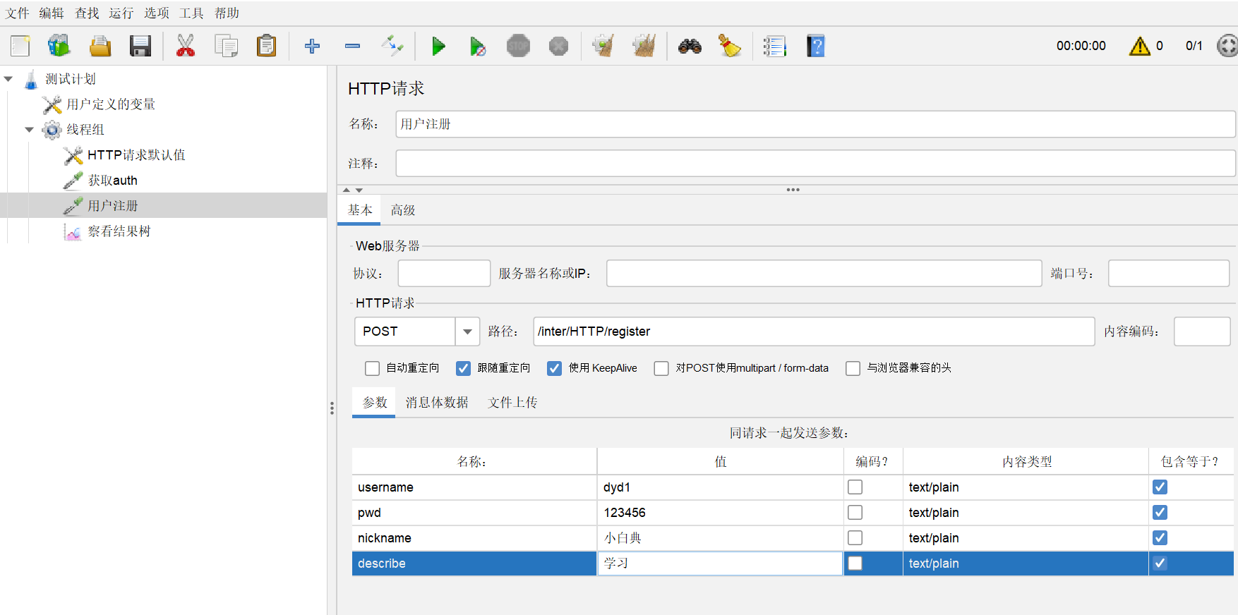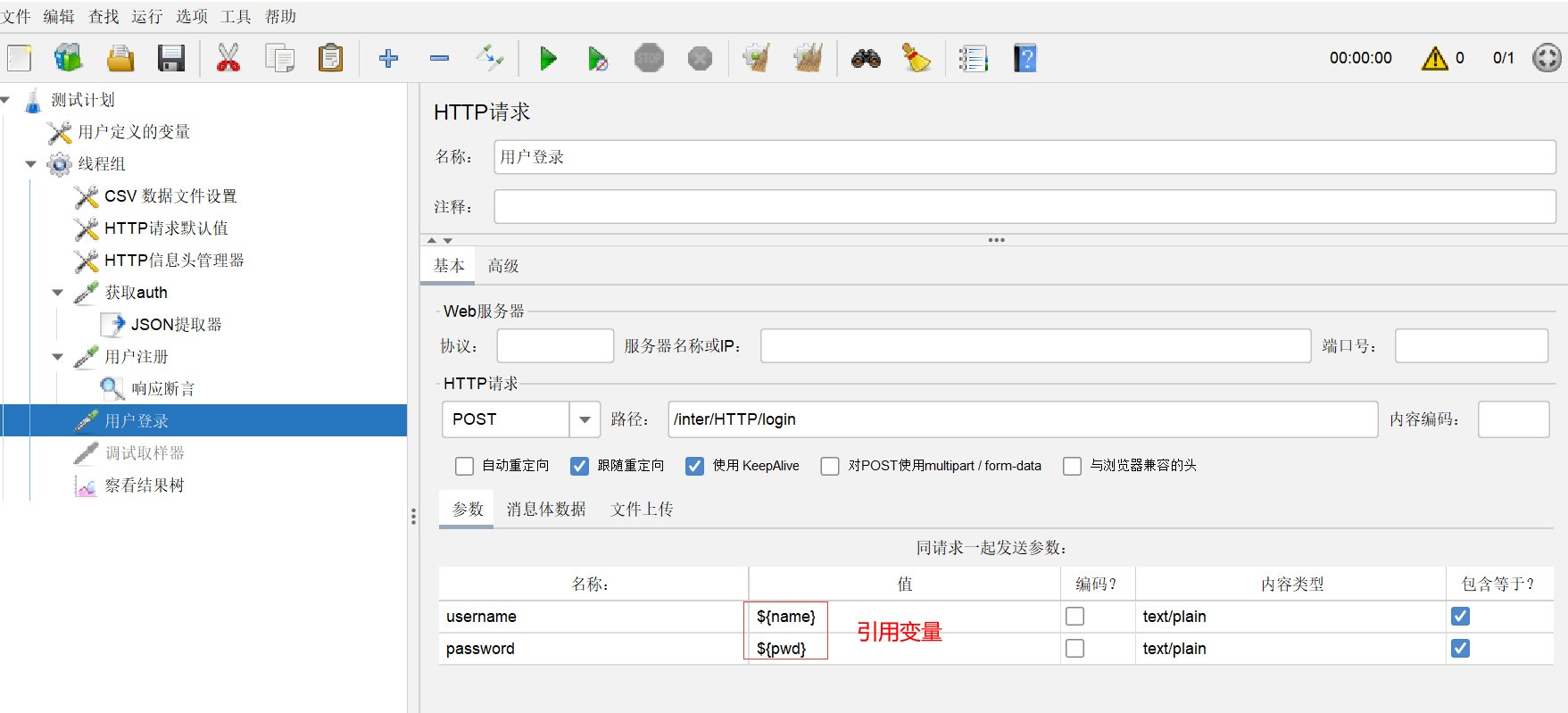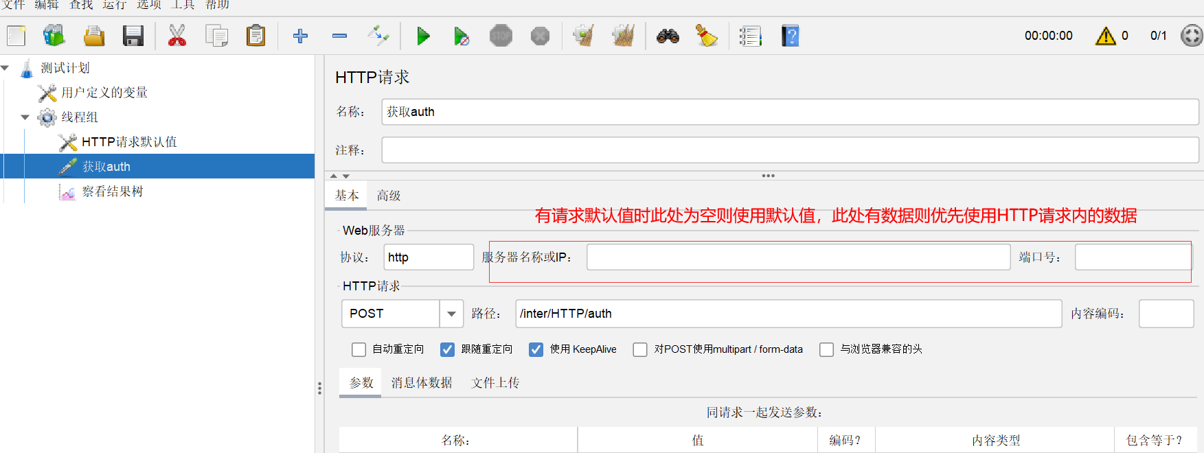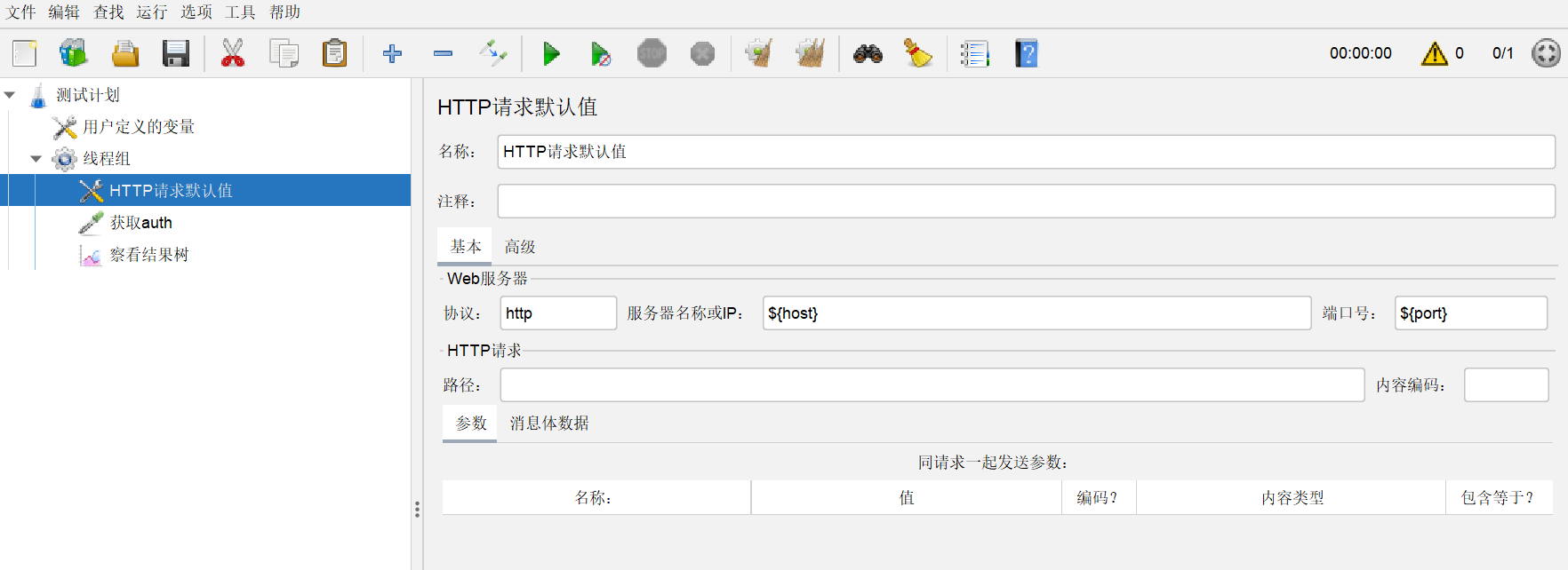 为了简化操作,我们添加用户自定义变量和HTTP请求默认值