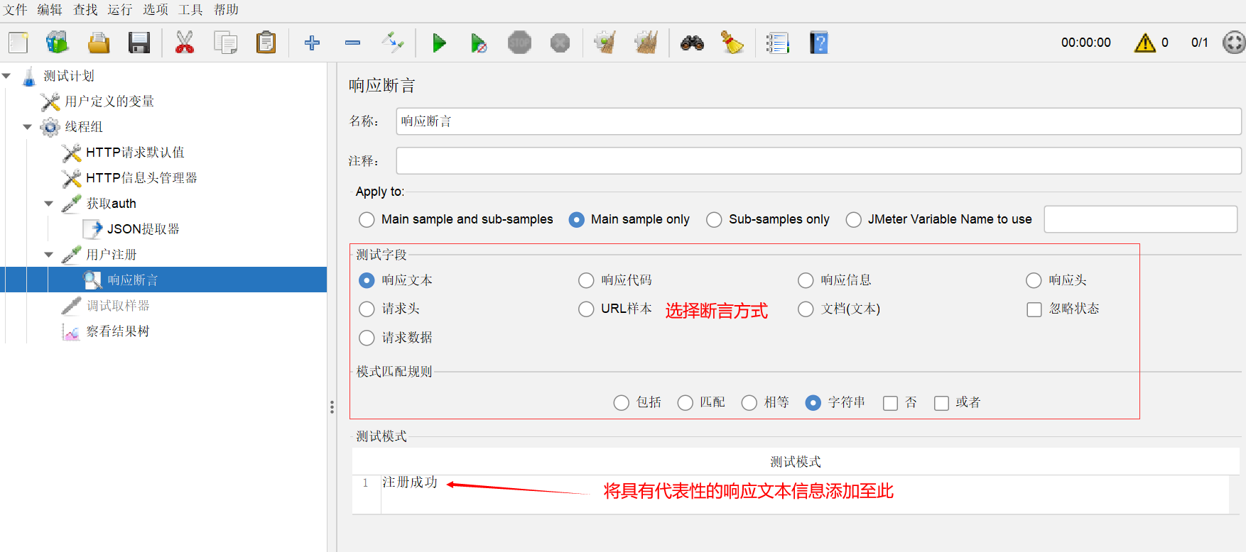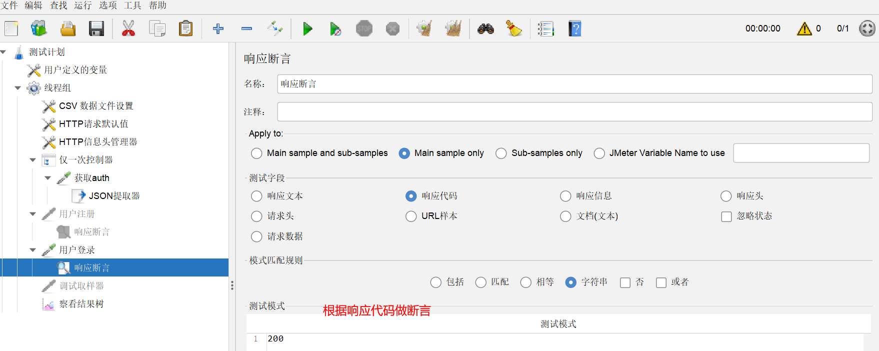 为了便于判断多个账号是否成功注册,通过添加断言判断结果