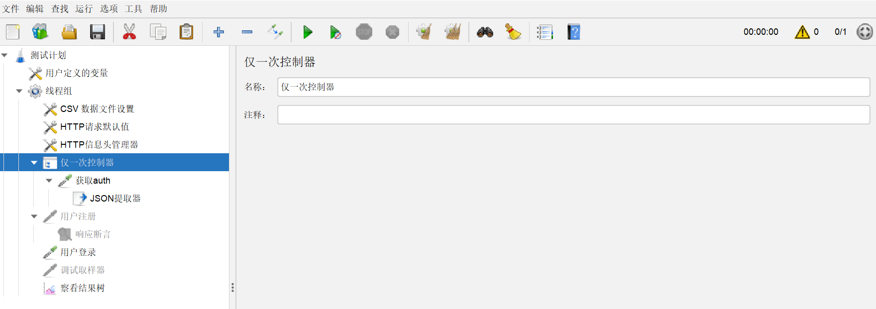 右键线程组,【添加】→【逻辑控制器】→【仅一次控制器】,将仅运行一次的请求拖拽至控制器内 (作用域的重要性不要忘记哦)