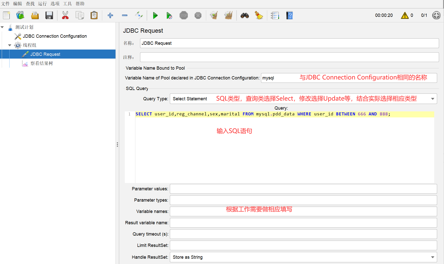 当使用变量应用时可以添加调试取样器,通过运行结果查看变量是否成功提取/引用,等所有接口或者说业务场景通过后再禁用或删除调试取样器