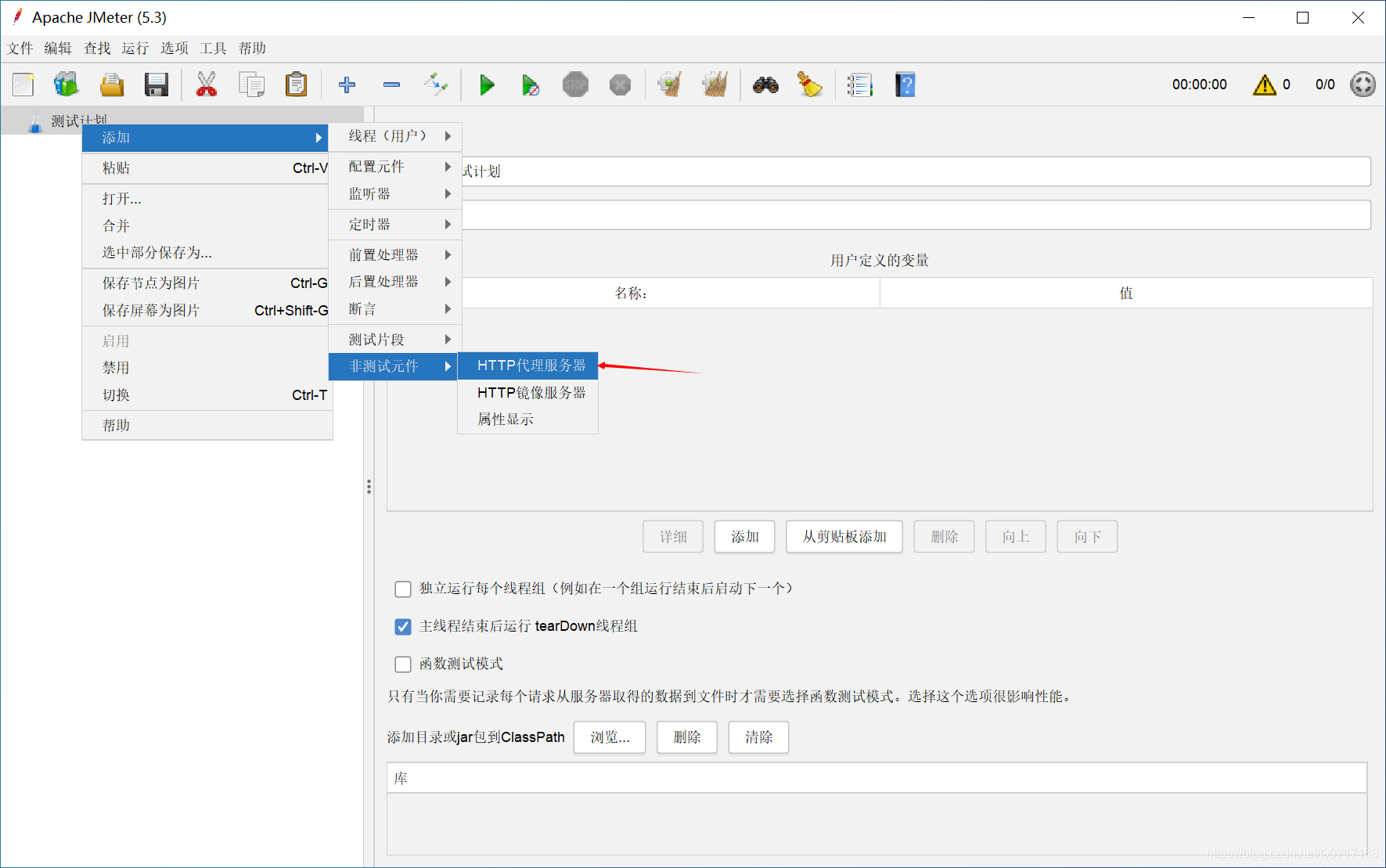 【测试计划】→【非测试元件】→【HTTP代理服务器】