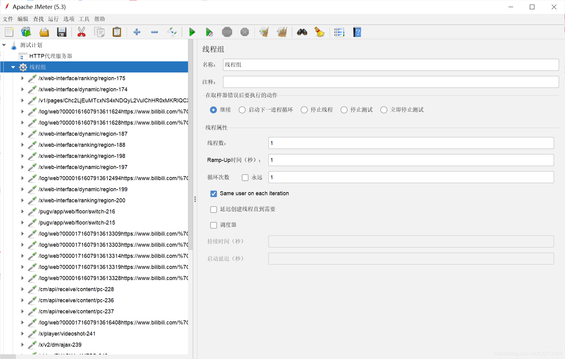 八、浏览需要录制的网站并执行想要操作,线程组内便会出现录制内容啦