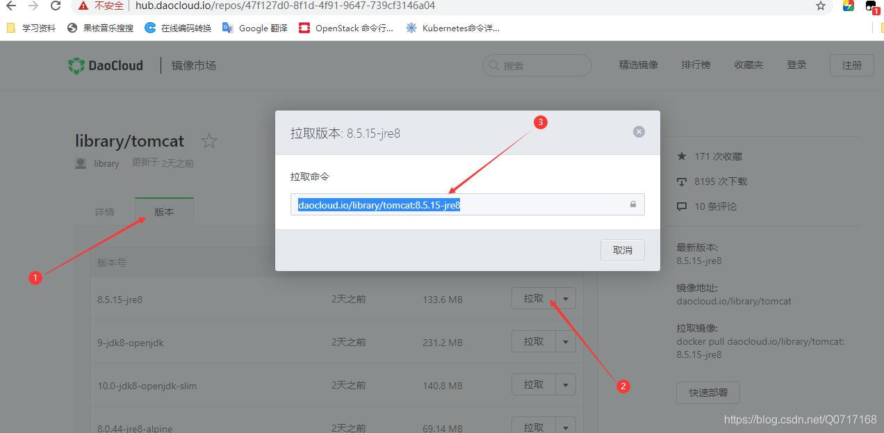镜像名称与标签组合为daocloud.io/library/tomcat:8.5.15-jre8