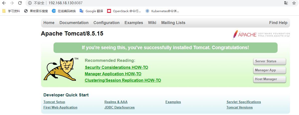 六、验证tomcat,注意:我们已经映射端口,所以访问是应使用宿主机端口,而非8080端口