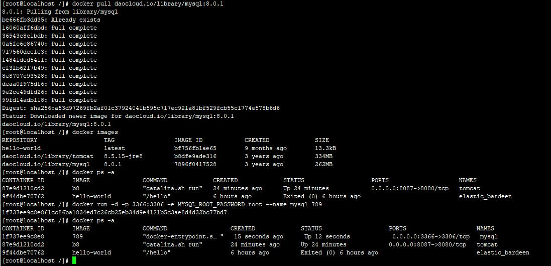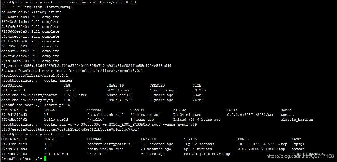 四、运行镜像docker run -d -p 3366:3306 -e MYSQL_ROOT_PASSWORD=root --name mysql 789