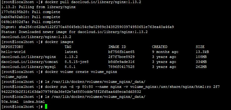 五、运行镜像docker run -d -p 80:80 --name nginx -v volume_nginx:/usr/share/nginx/html:ro 2f7