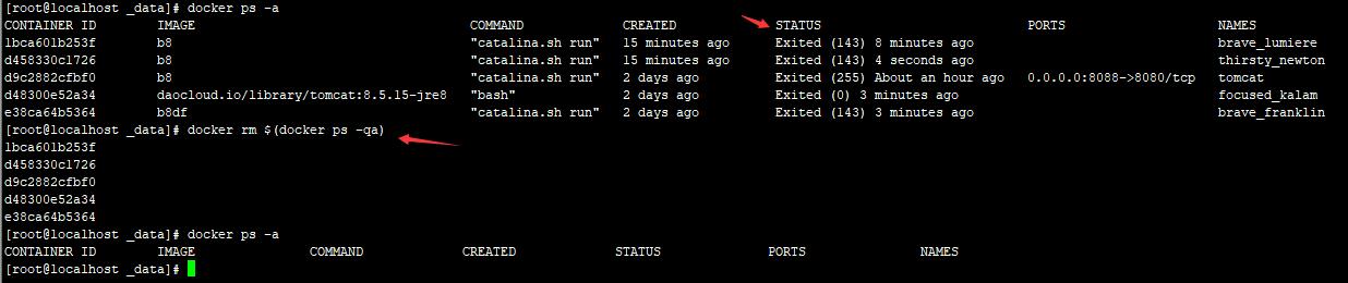 docker start/restart/stop/rm (docker ps -qa) 启动/重启/停止/删除所有容器