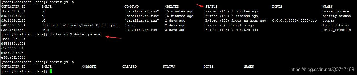 docker rm 容器名或ID :删除容器