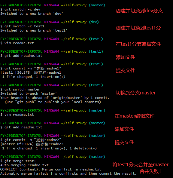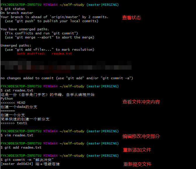 | vim、cat、ll、cd、pwd、rm、touch、mkdir等 | 常用linux命令,在Git下使用,不做过多解释 |